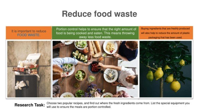FOOD WASTE. food is being cooked and eaten. This means throwing