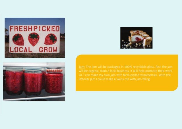 Jam: The jam will be packaged in 100% recyclable glass. Also the jam