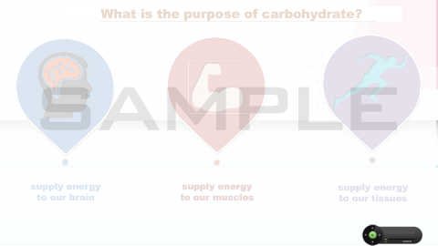 What is the purpose of carbohydrate? supply energy supply energy supply energy to our brain to our muscles to our tissues